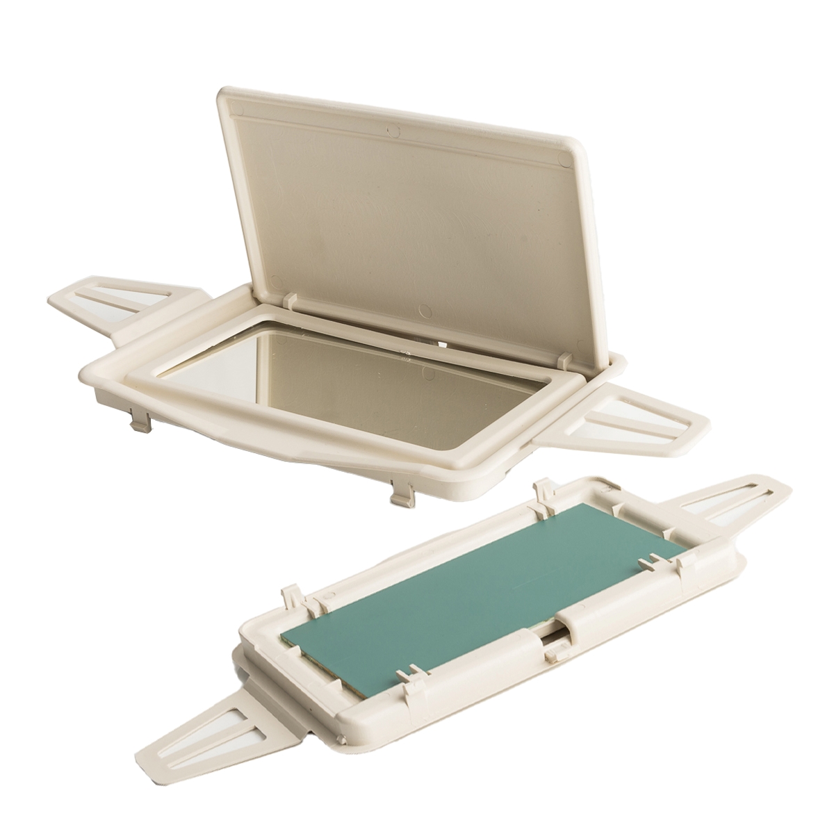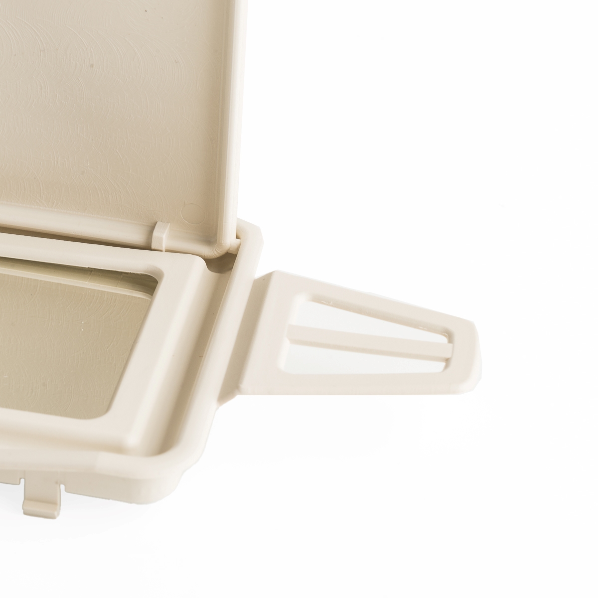 Der Sonnenblende-Spiegelrahmen dient dazu, den Spiegel in der Sonnenblende zu halten und eine einfache Einstellung des Spiegels zu ermöglichen. Das Cover besteht in der Regel aus Kunststoff oder einem anderen leichten Material, das gleichzeitig stabil und haltbar ist. Wenn die Spiegelabdeckung beschädigt ist oder nicht mehr ordnungsgemäß funktioniert, kann er in der Regel relativ einfach ausgetauscht werden.