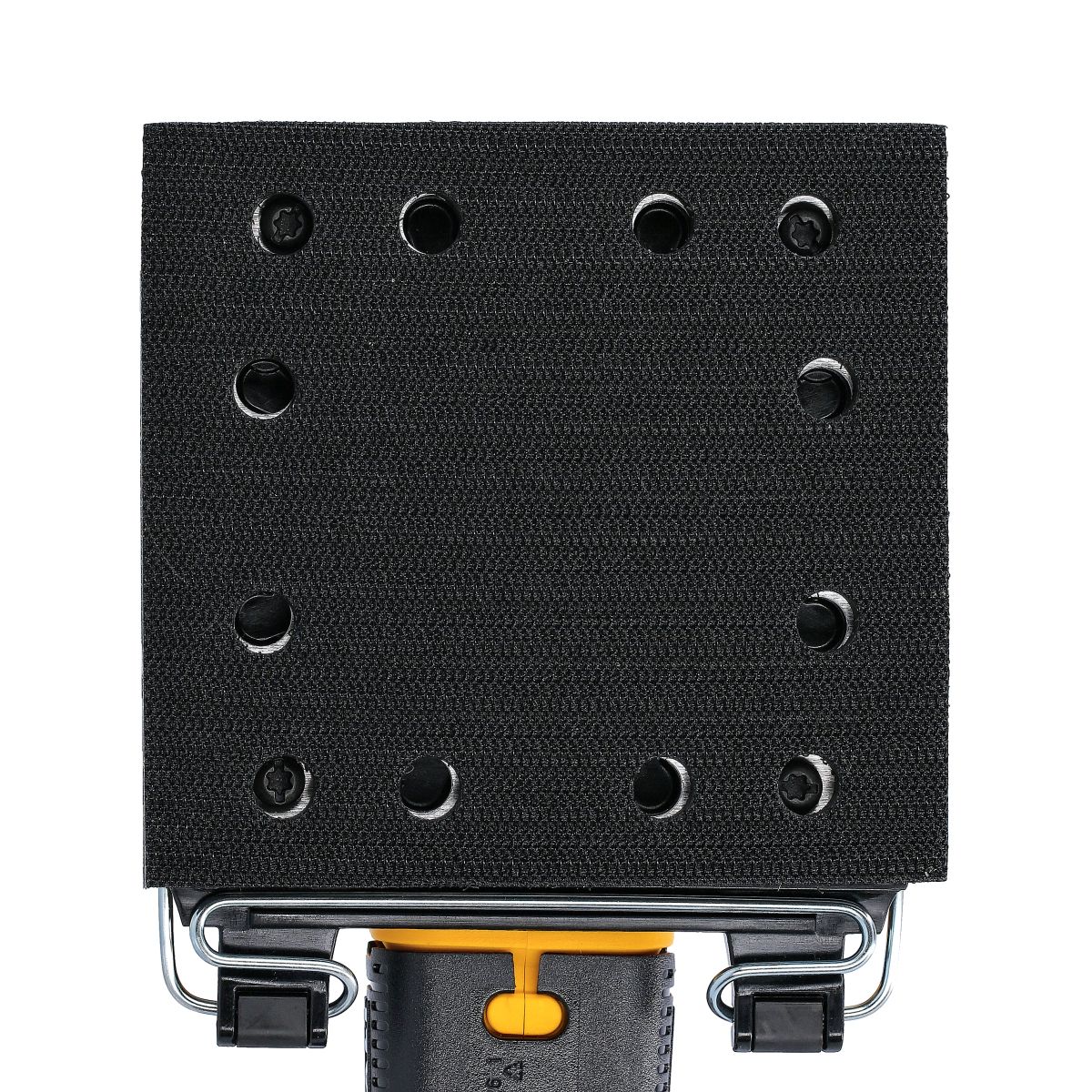 - Hook and loop pad allows quick change of sheets of paper, provides better dust extraction and increases sanding efficiency