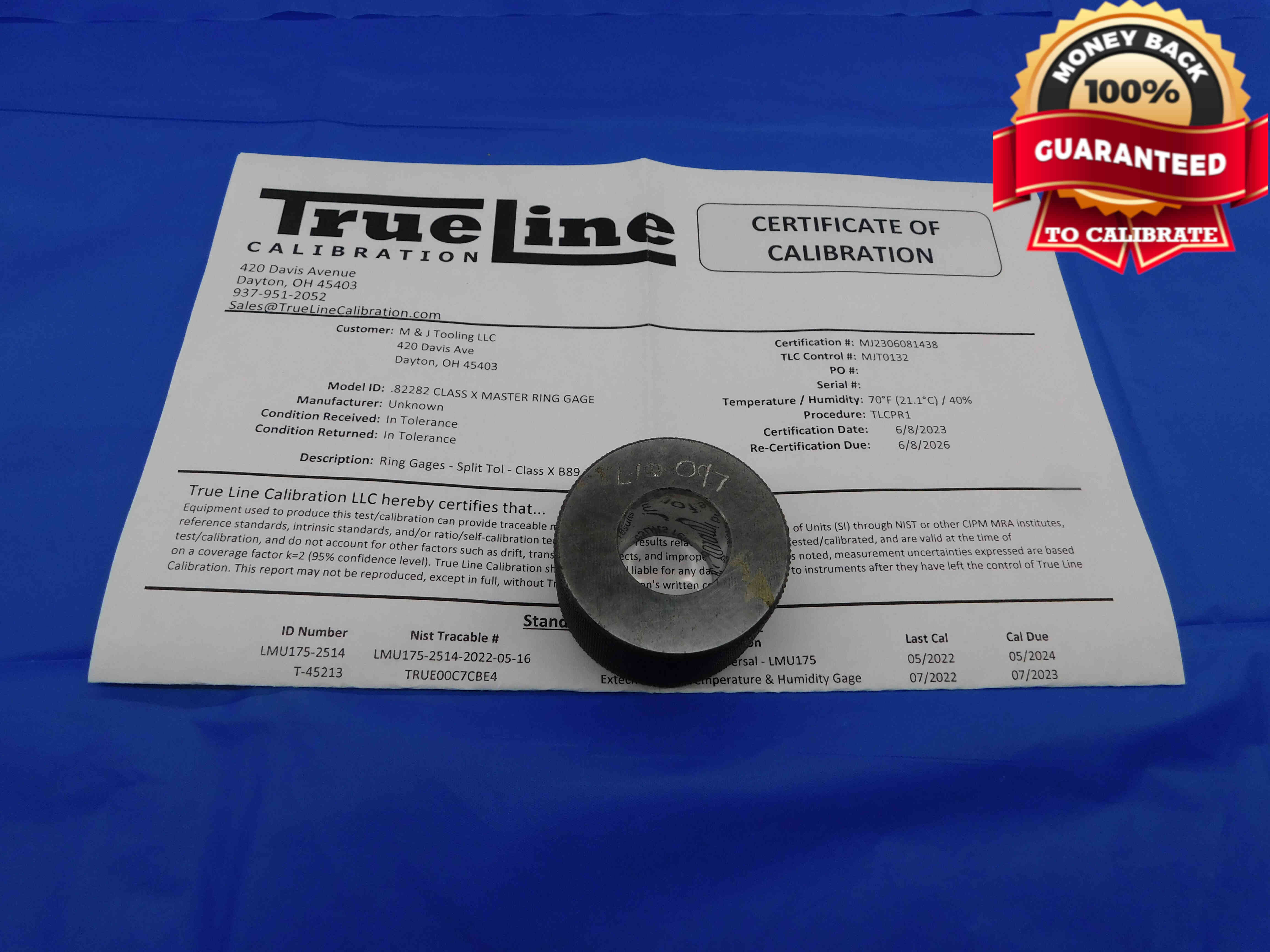 .82282 CL X MASTER PLAIN BORE RING GAGE .8125 +.0103 13/16 21 mm CERTIFIED CHECK