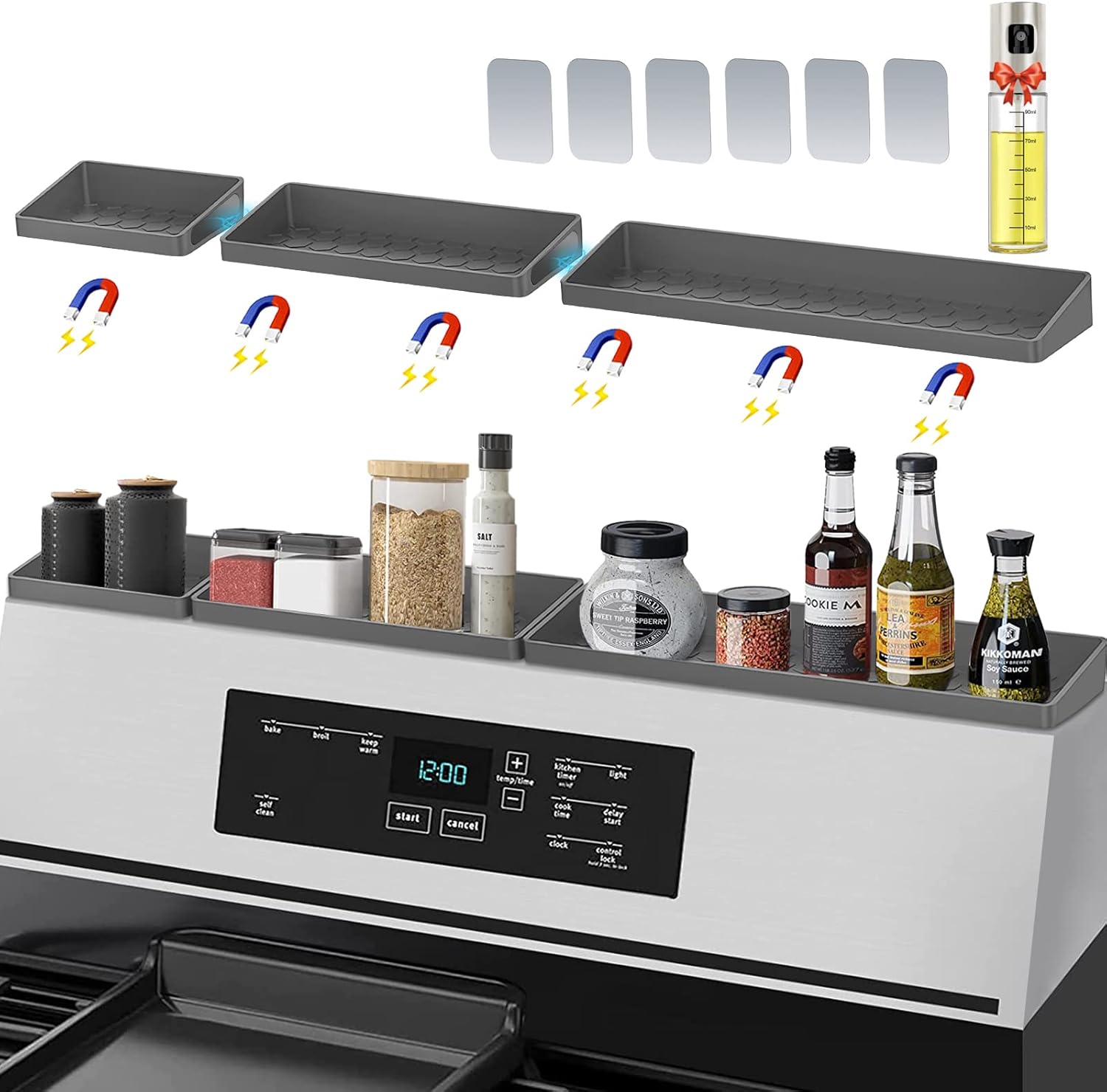 Give your kitchen a clean and tidy look with our silicone stove top shelf !
