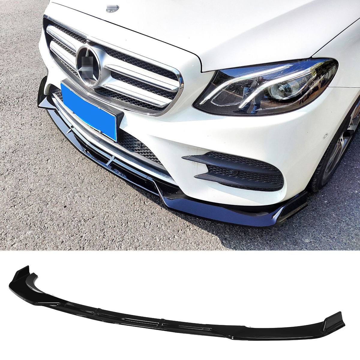 Für Mercedes-Benz E-Klasse W213 2016-2020 glänzend schwarz Front Stoßstange Lippe Spoiler Abdeckung Trim 3PCS