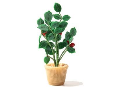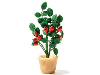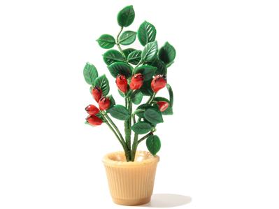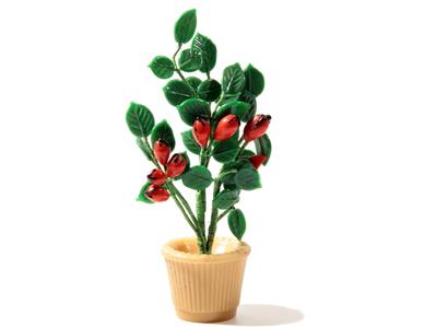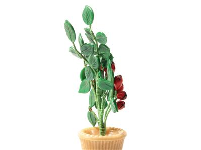 Vintage Bohemian Czech hand wired lampworked green leaves and rose hips art Glass beaded flower bouquet in crystal plant pot.