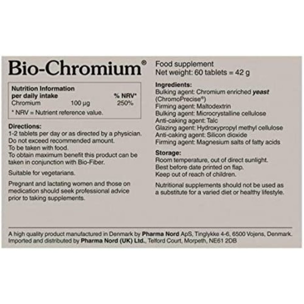 IngredientsEach tablet contains 100 microgram of chromium (organically bound). Other ingredients: chromoprecise yeast (organically bound including glucose tolerance factor), maltodextrin, microcrystalline cellulose, talc, hypromellose, silicon dioxide, magnesium stearate.