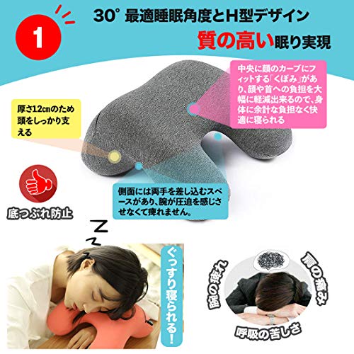 [Neck pillow and nap pillow, freely convertible] H type as the beautiful curve design, can be applied to various scenes by changing the way place. Car or bullet train, can be used as a neck pillow when the rest in an airplane, and so forth. Firmly support the head and neck, cervical spine, back, you can effectively reduce the burden on the shoulder. | [With a storage bag, washable] convenient to carry without taking space will be and put in the supplied pouch 1/2 size! Cover adopts the double cover, more highly breathable, you can quickly absorb the night sweats and sebum. And, because it has excellent antibacterial and deodorizing properties for high-quality material, you can longer keep a comfortable and clean. | [Trying to enjoy the best nap] design based on Asia of ergonomics brings a natural and comfortable sleep. When the prone sleeping on the desk, the arm can be released from pain and numbness, you can achieve good quality sleep. The center of the depression design of the pillo
