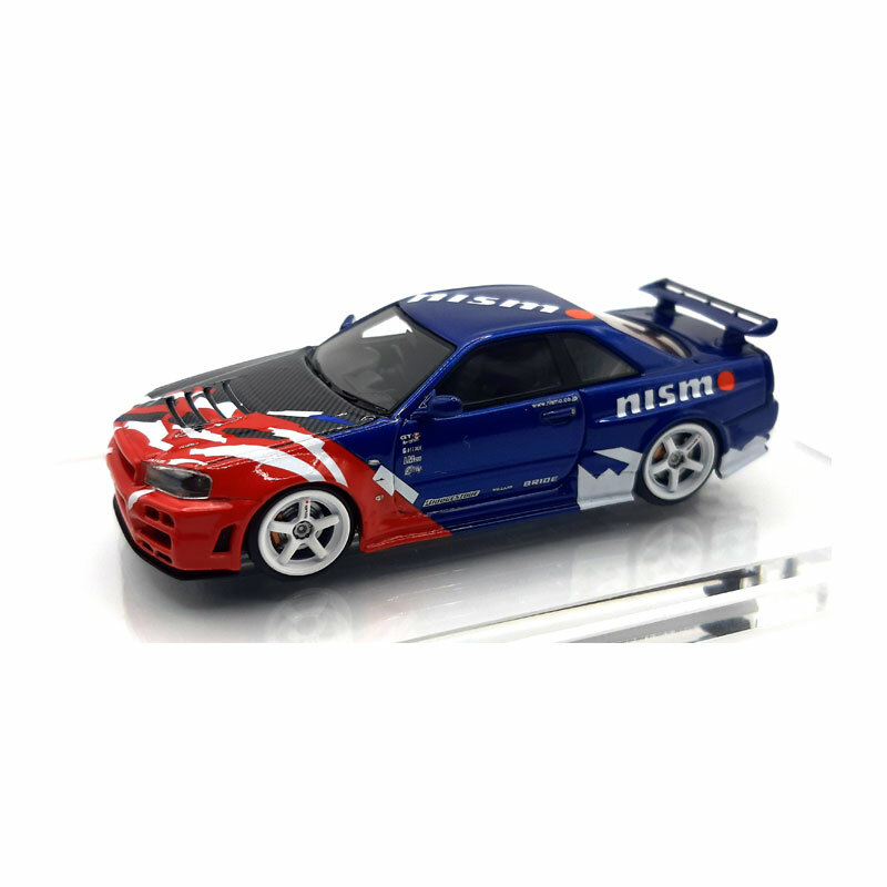 Sofort Kauf Ignition IG2573 Nissan Nismo R34 GT-R R-tune Launch Ver. TAS blau/rot/weiss 1:64