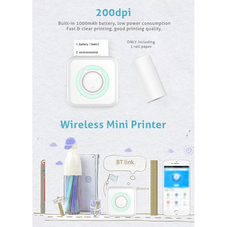 1pc X Portable Mini Printer, Thermal Paper and charging USB