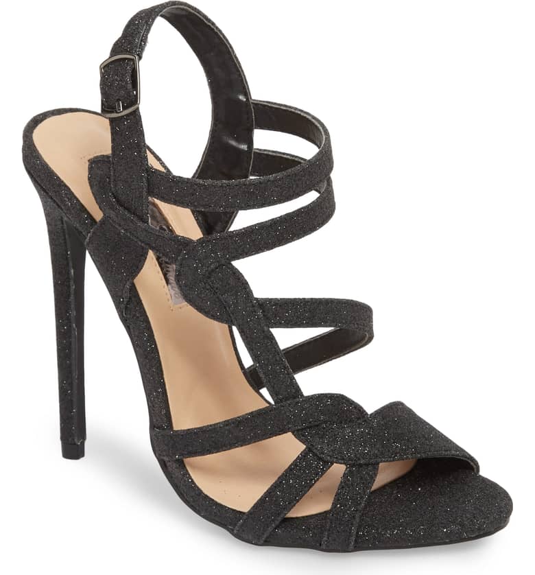 Lauren Lorraine Black Strappy Glittery Gidget Sandal HIgh Heel Formal Pump