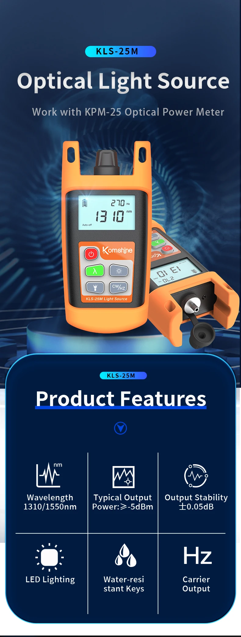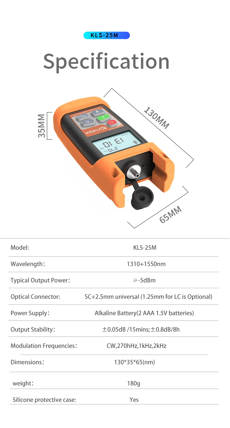 KomShine Mini Optical Fiber Light Source OLS KLS-25 SM MM PON Type 850/1300/1310/1550/1490nm -5dB
