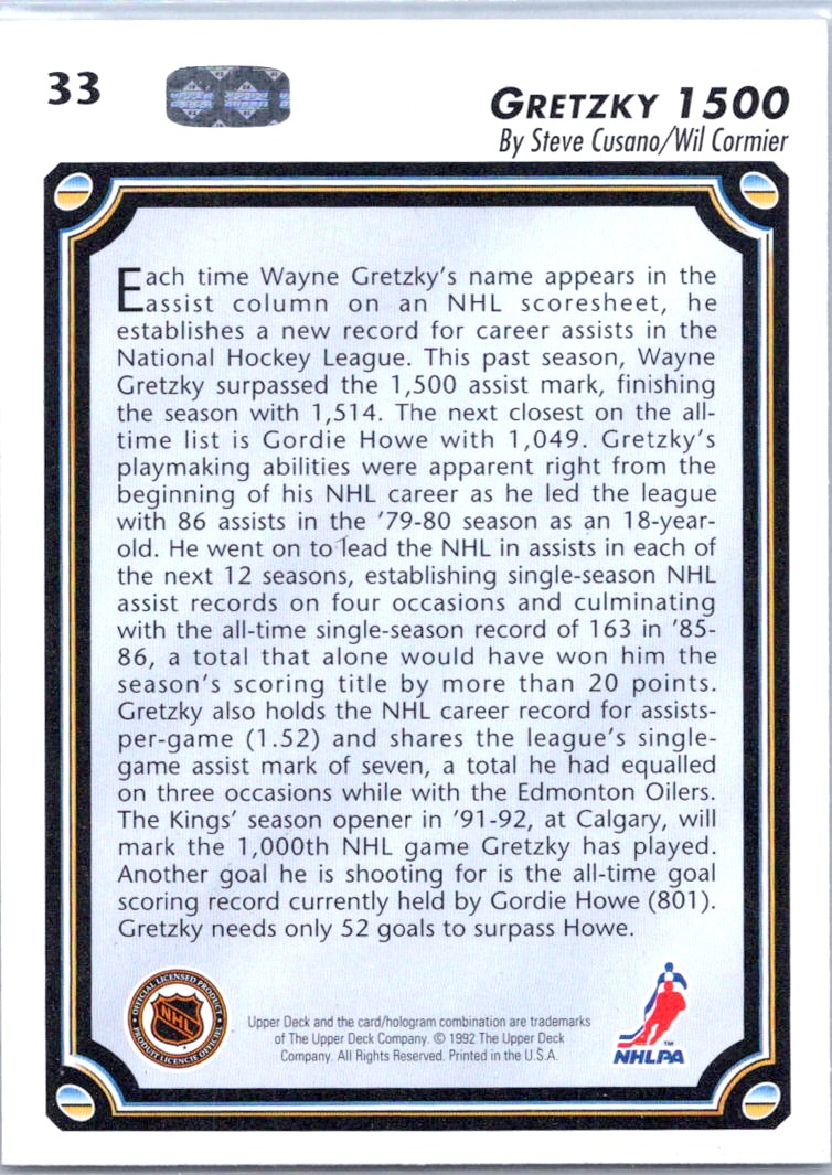 | 1992-93 Upper Deck 33 Wayne Gretzky |