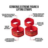 CERBERUS Extreme Figure 8 Lifting Straps are made from our V2 heavy-duty nylon webbing, which is stronger yet more comfortable to use than our first generation. These straps are exceptionally strong yet thin allowing you to get a tight, close fit to the bar. Use CERBERUS Extreme Figure 8 Straps to enhance lifting technique, reduce premature grip fatigue and increase your work rate by up to 30%! Get ready for some PB's!