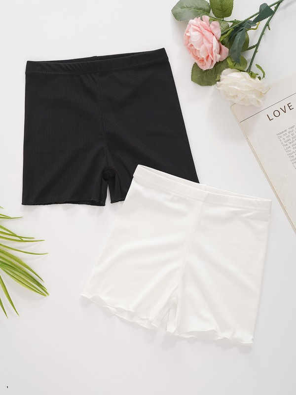 High waist shorts for girls, ribbed design, solid color, 2 different colors in a pack to meet your different needs.