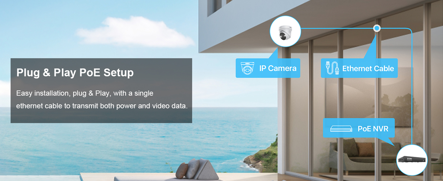 With a single ethernet cable to transmit both power and video data, you can easily get this security system run with simplified PoE installation.