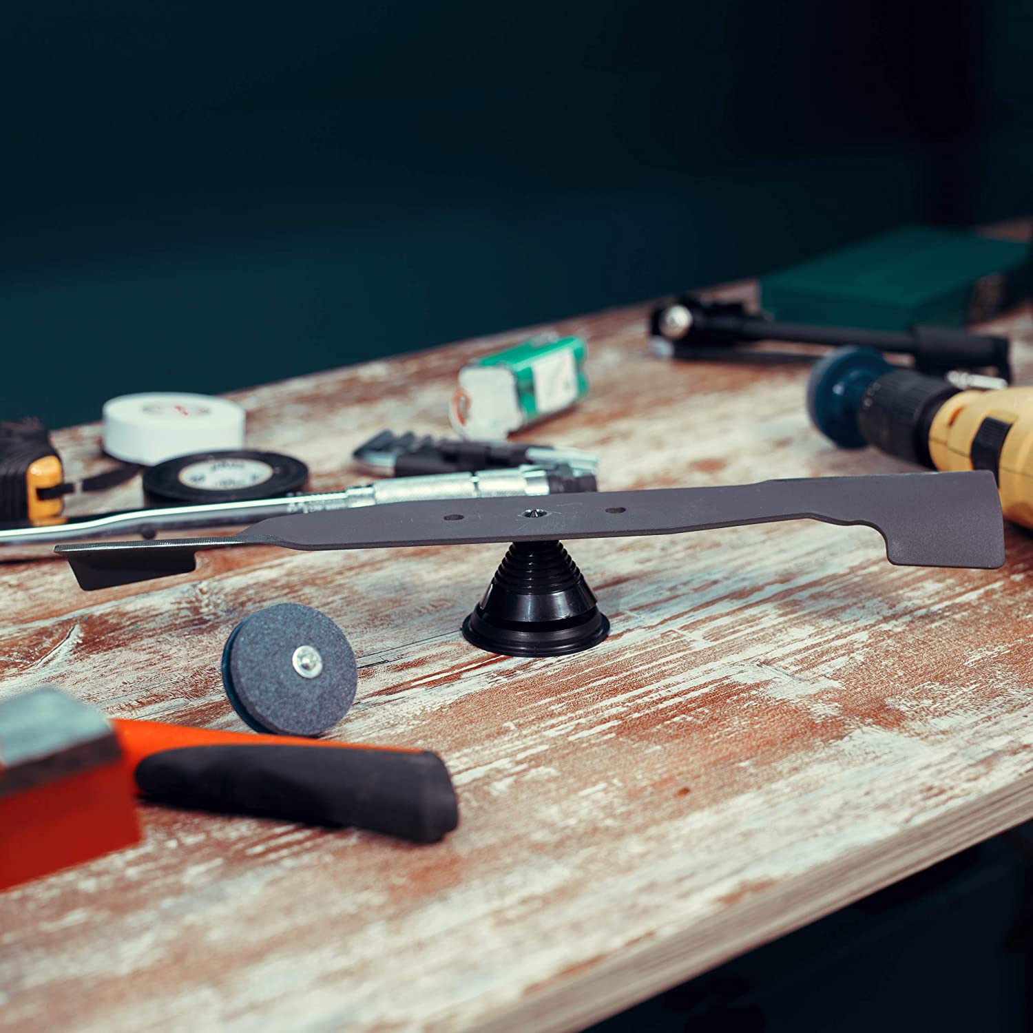 FREE BLADE BALANCER - The mower blade balancer assures even sharpening of the lawnmower blade to create razor-sharp cuts.