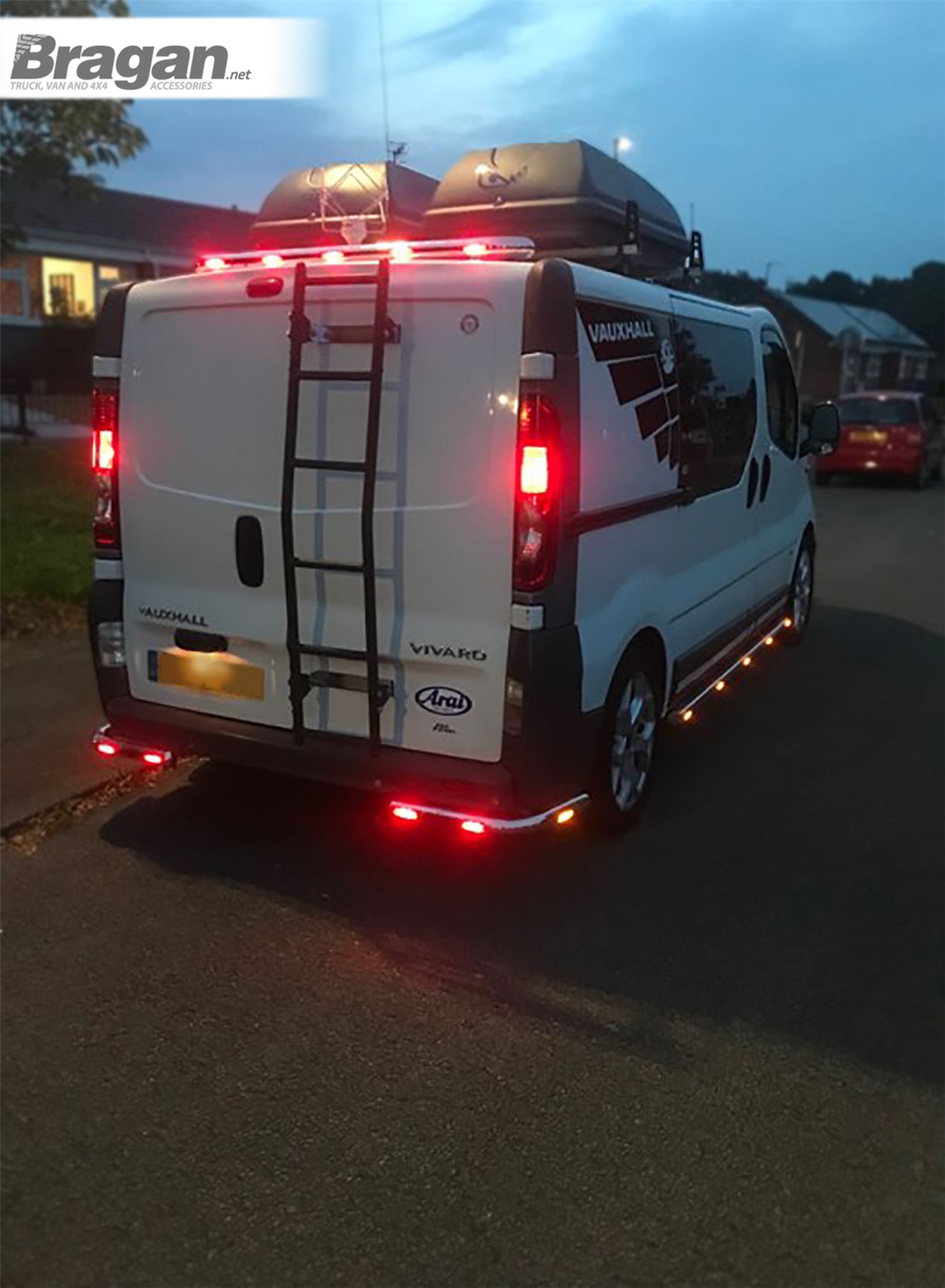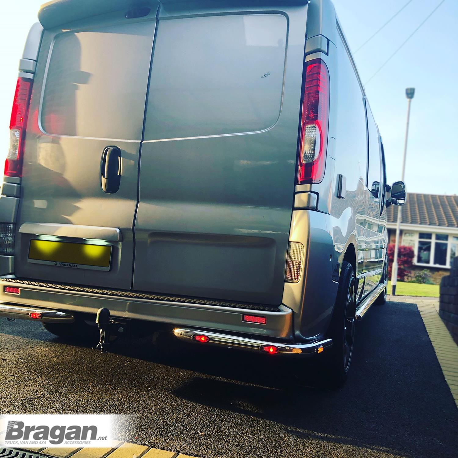 High-quality SUS 304 Grade Stainless Steel Set of 2 (Pair) Rear Corner Bars with Amber Side LEDs x2 and Rear Facing Red LEDs x4 For Vauxhall / Opel Vivaro (2002 - 2014) SWB (Short Wheel Base) and LWB (Long Wheel Base). These top-of-the-range corner bars will have your van looking top spec at a fraction of the cost of the genuine items, but with the same high quality.
