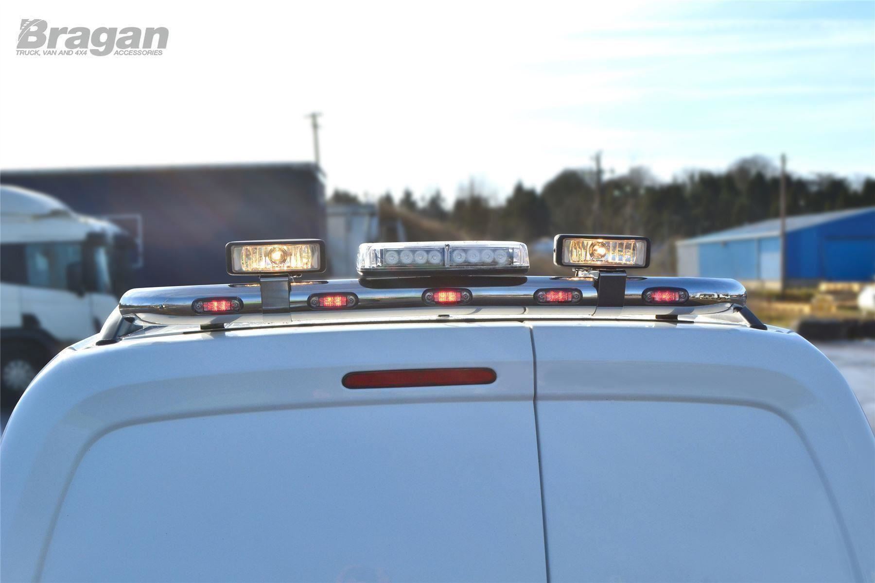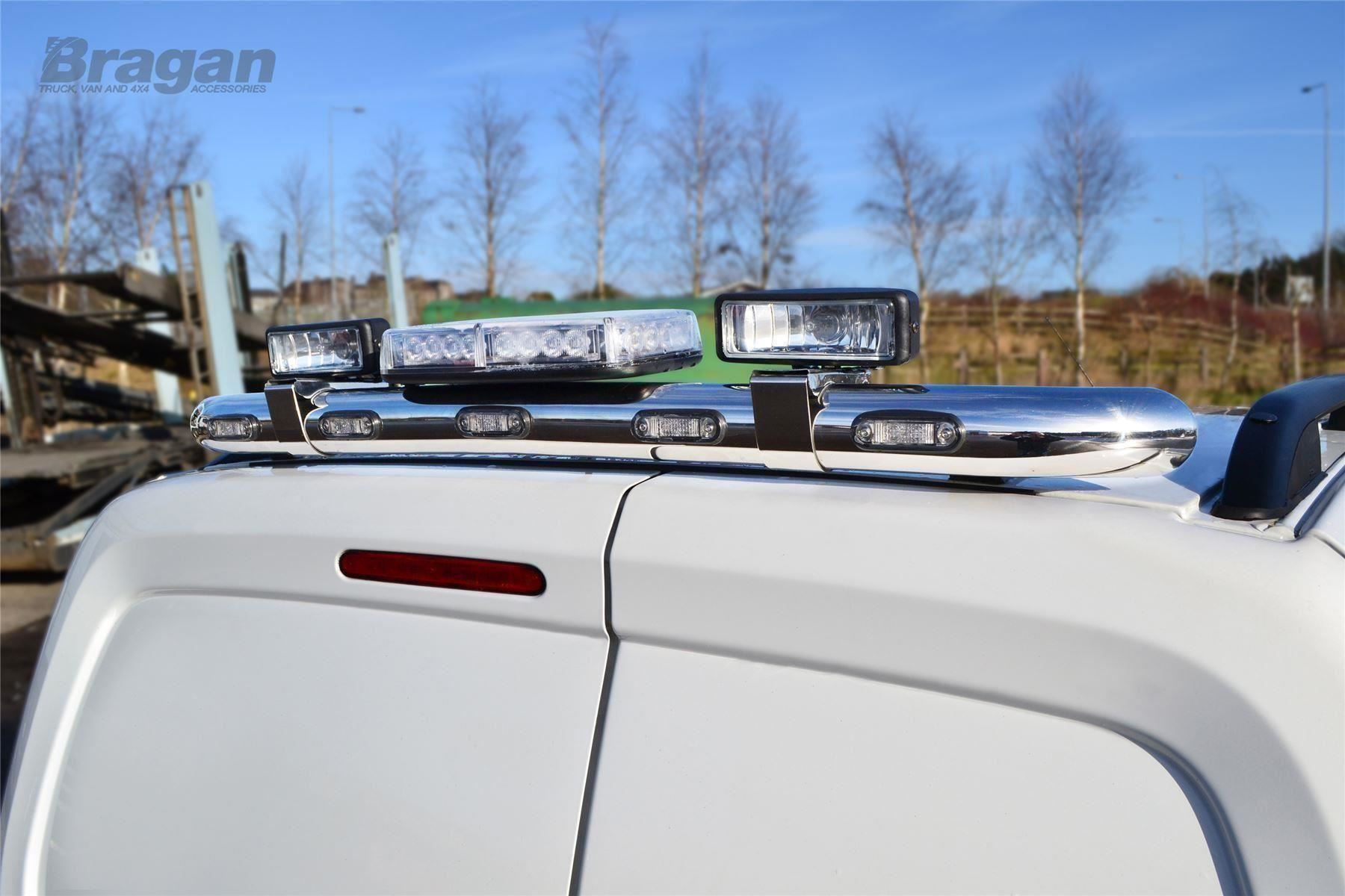 High quality Isuzu D-Max / Rodeo (2002-2007) (with canopy fitted only) stainless steel rear roof bar with flashing beacon, 2 x lamps and 5 x Red LED. This top of the range bar will have your vehicle looking top spec at a fraction of the cost of the genuine items but with the same high quality.