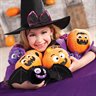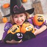 Carve up a great time with these stuffed pumpkins. They have super cute â€" and not scary â€" jack-o'-lantern faces and they're fun toys or décor pieces around Halloween. Hand out these mini pumpkins to trick-or-treaters or include them in Halloween haunted house swag bags. Plush. 4 1/2 diam. ©