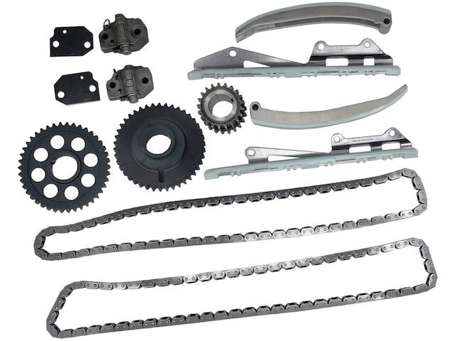 Notes: Engine Timing Chain Kit -- Includes: Camshaft Sprocket (2), Crankshaft Sprocket, Chain (2), Tensioner Arm (2), Tensioner (2), Guide (2)