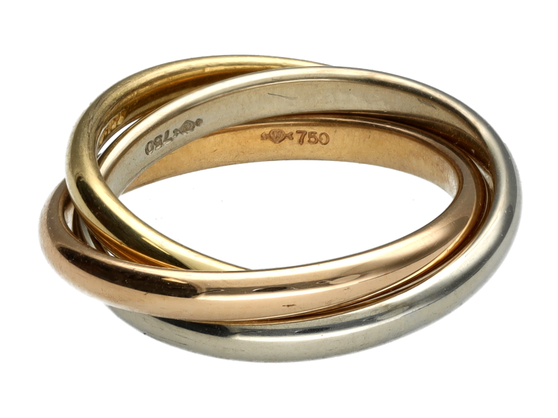 Sie bieten auf einen sehr schönen original Niessing Dreifach Damen Ring in 750 Gelbgold, Weißgold und Rosegold.