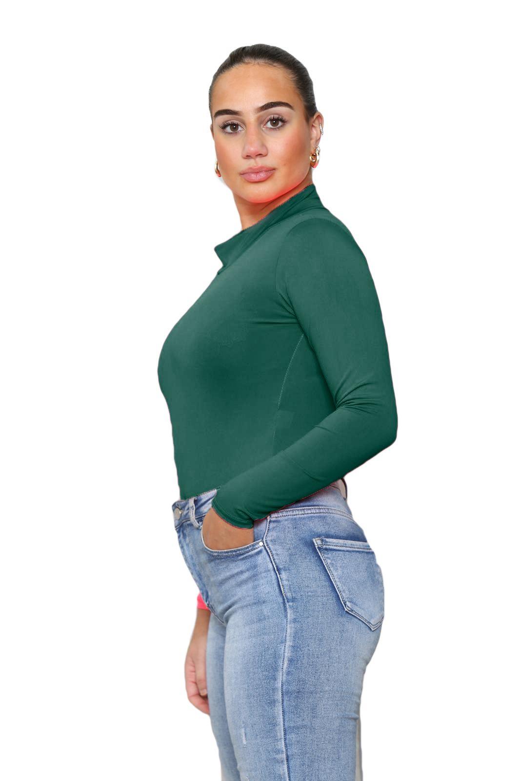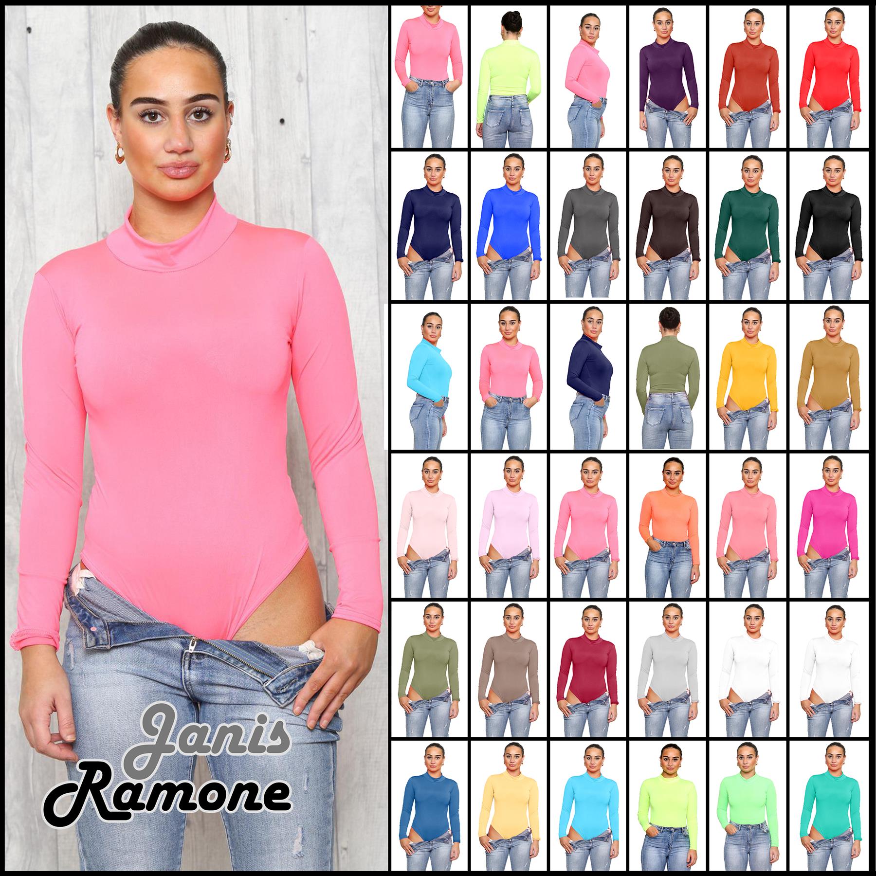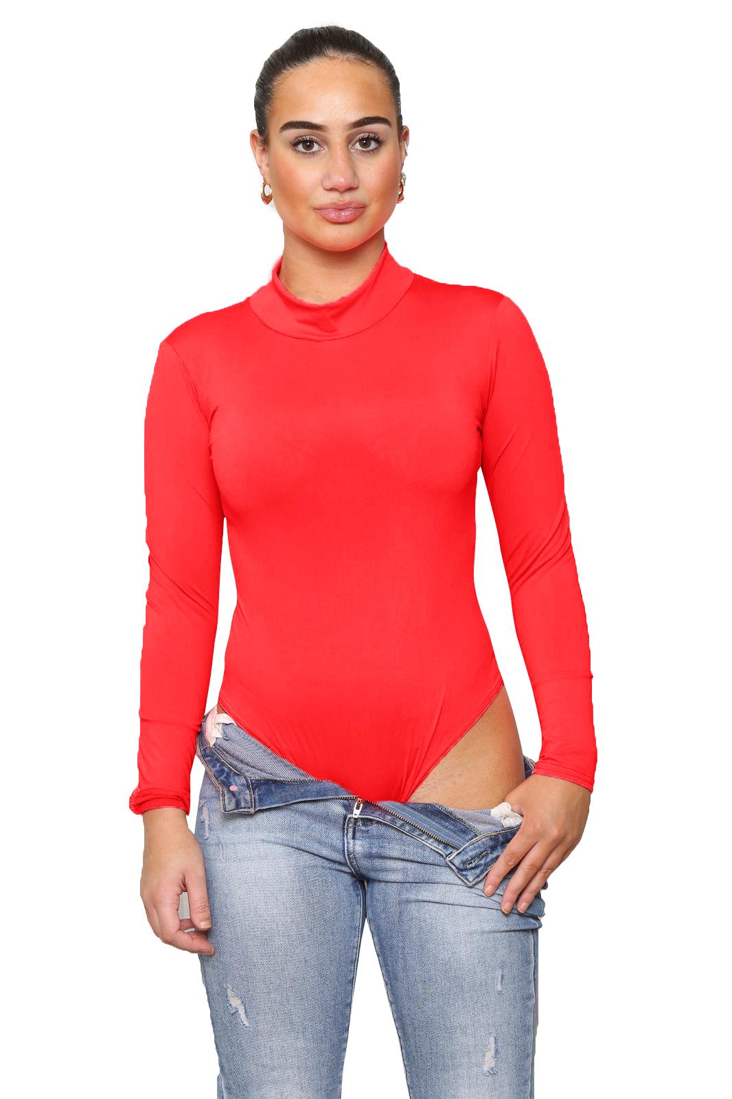 New Womens Ladies High Polo Turtle Neck Long Sleeve Plain Leotard Bodysuit Stretch T Shirt Top Perfect To Wear Night Out In This Spring Season. It Has Soft, Stretchy Comfortable Material Slim Fit Long Sleeve High Polo Turtle Neck Popper Fastening, Plain Leotard Stretch Bodysuit Top Which Is Ideal For All Occassions Looks Perfect With Skinny Jeans And Boyfriend Cardigan.