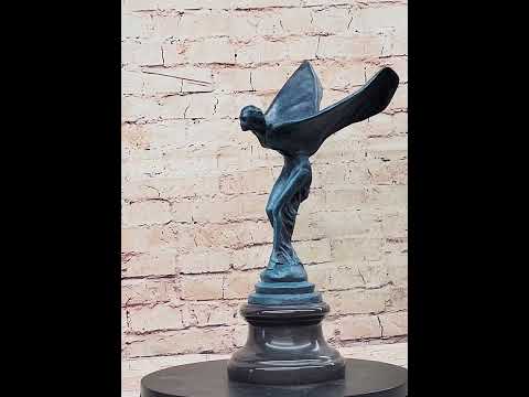 Embrace the allure of Art Nouveau with the Flying Lady Rolls Royce Bronze sculpture. Inspired by Charles Sykes' iconic design, this masterpiece embodies elegance and sophistication, harkening back to a golden era of automotive excellence. The sculpture features the legendary "Flying Lady," also known as the Spirit of Ecstasy, gracefully posed with flowing robes and outstretched wings, symbolizing freedom and adventure. Meticulously handcrafted using the hot cast bronze technique, this artwork exudes both quality and durability, preserving every intricate detail and showcasing Charles Sykes' artistic prowess. The addition of a rich patina finish adds depth and character, elevating this sculpture to a captivating centerpiece that appeals to art enthusiasts and automotive aficionados alike, paying homage to the timeless allure of Rolls Royce.