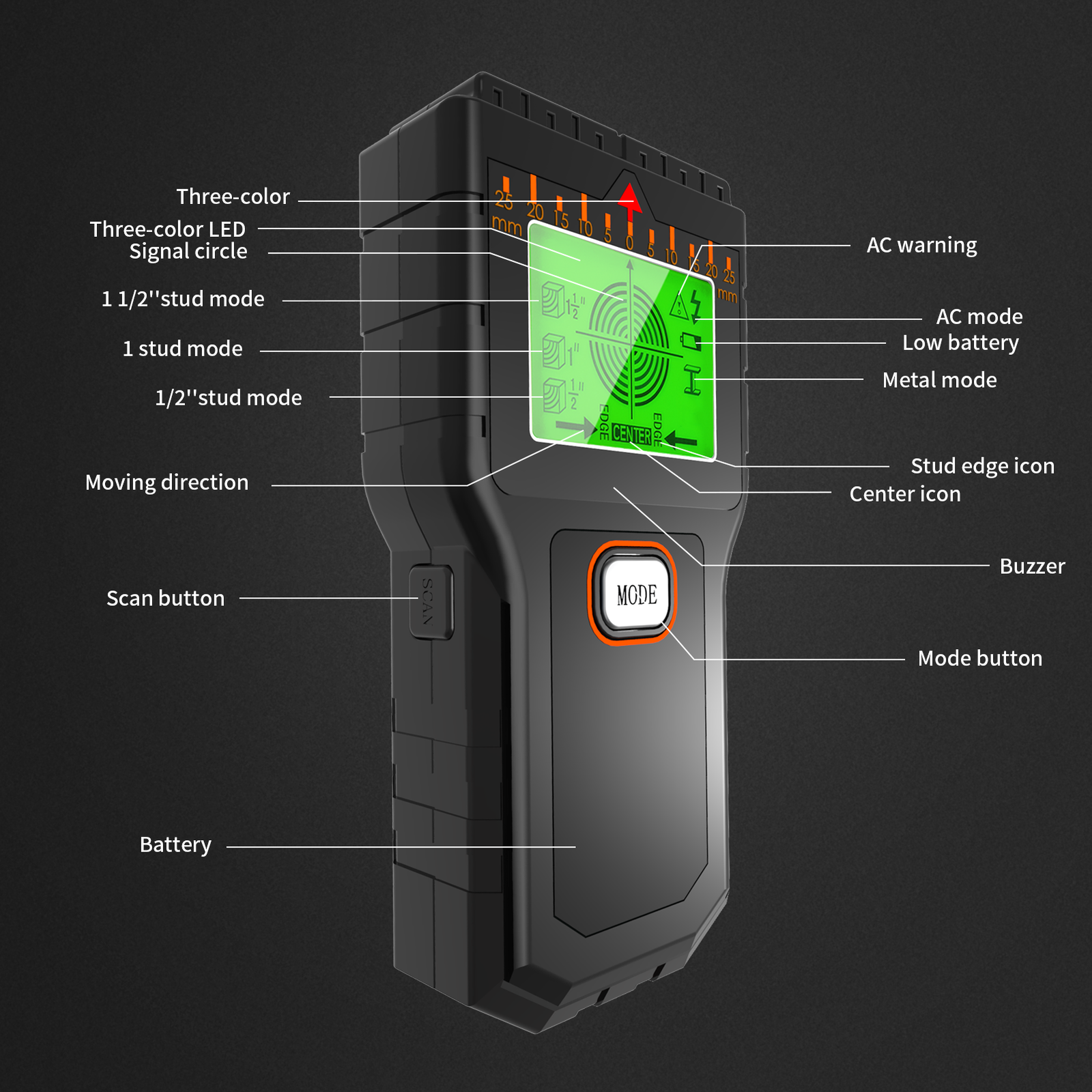 quickly locates wood, metal, and AC wires hidden in your home's walls,