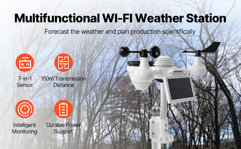 VEVOR 7.5 in Multifunctional Solar-Powered Wi-Fi Weather Station