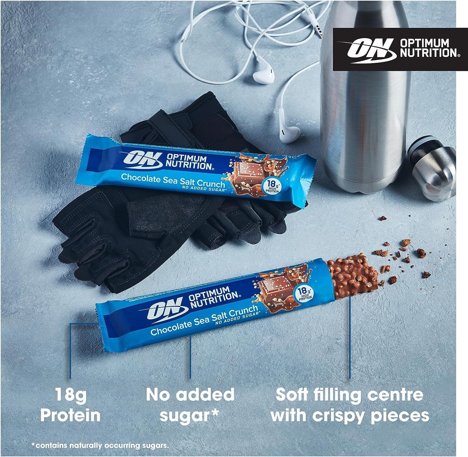 Fuel up with Optimum Nutrition’s Chocolate Sea Salt Crunch protein bar.