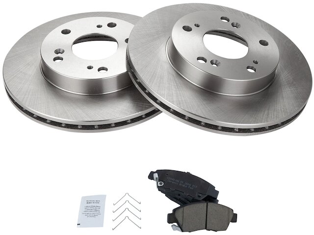 Package Contents: (2) Front Brake Rotors; (1) 12 oz DOT 3 & 4 Brake Fluid; (1) 13 oz Non-Chlorinated 50 State Formula Brake Cleaner; (1) Front Ceramic Brake Pad Set with Contact Point Grease & Hardware