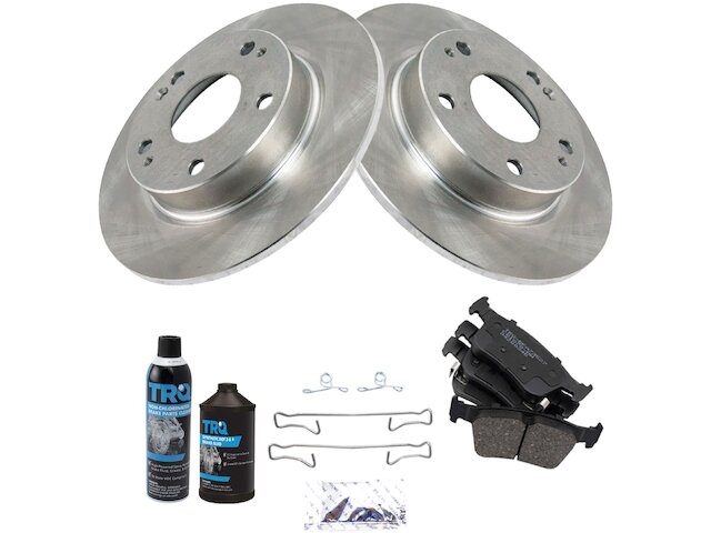 Package Contents: (2) Rear Brake Rotors; (1) 12 oz DOT 3 & 4 Brake Fluid; (1) 13 oz Non-Chlorinated 50 State Formula Brake Cleaner; (1) Rear Ceramic Brake Pad Set with Contact Point Grease & Hardware