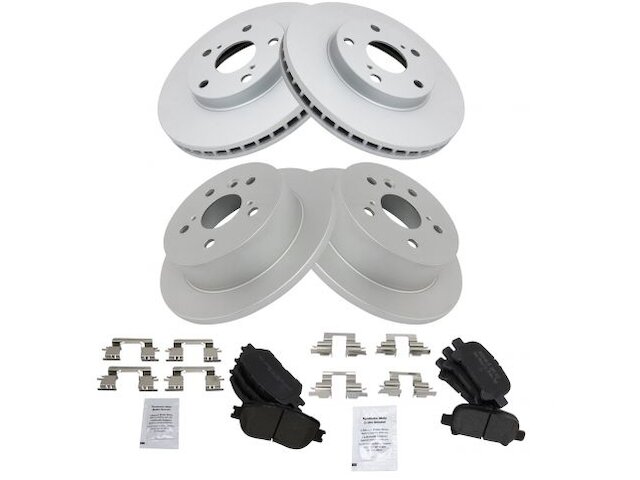 Package Contents: (2) Front G-Coated Brake Rotors; (2) Rear G-Coated Brake Rotors; (1) Front Semi-Metallic Brake Pad Set with Contact Point Grease & Hardware; (1) Rear Semi-Metallic Brake Pad Set with Contact Point Grease & Hardware