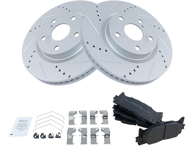 Package Contents: (2) Front Performance Brake Rotors; (1) Front Semi-Metallic Brake Pad Set; Brake Pad Contact Point Grease; Brake Pad Hardware