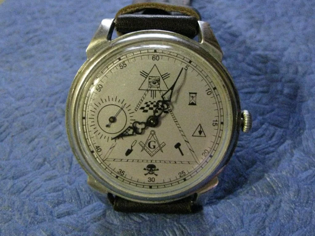 Excellent Rare Watch MOLNIJA 3602 MASONIC SYMBOLS ON THE STRAP in