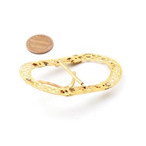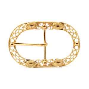 Vintage Art Deco Czech Bohemian hand crafted gold tone plated press stamped pierced openwork dress or shoe buckle. Hand made from several sections of metalwork and finished with applied gold balls and floral discs. A beautiful original buckle in excellent condition.