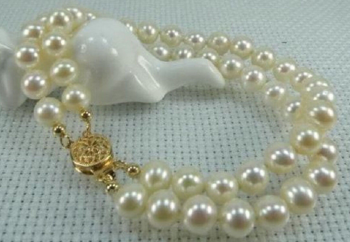 Beautiful 2 Rows 8mm White South Sea Shell Pearl Round Beads Bracelet 7.5''