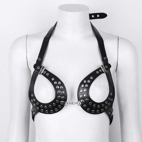 Halter with press buttons, crop top is decorated with rivets, back with buckle for size adjustment.