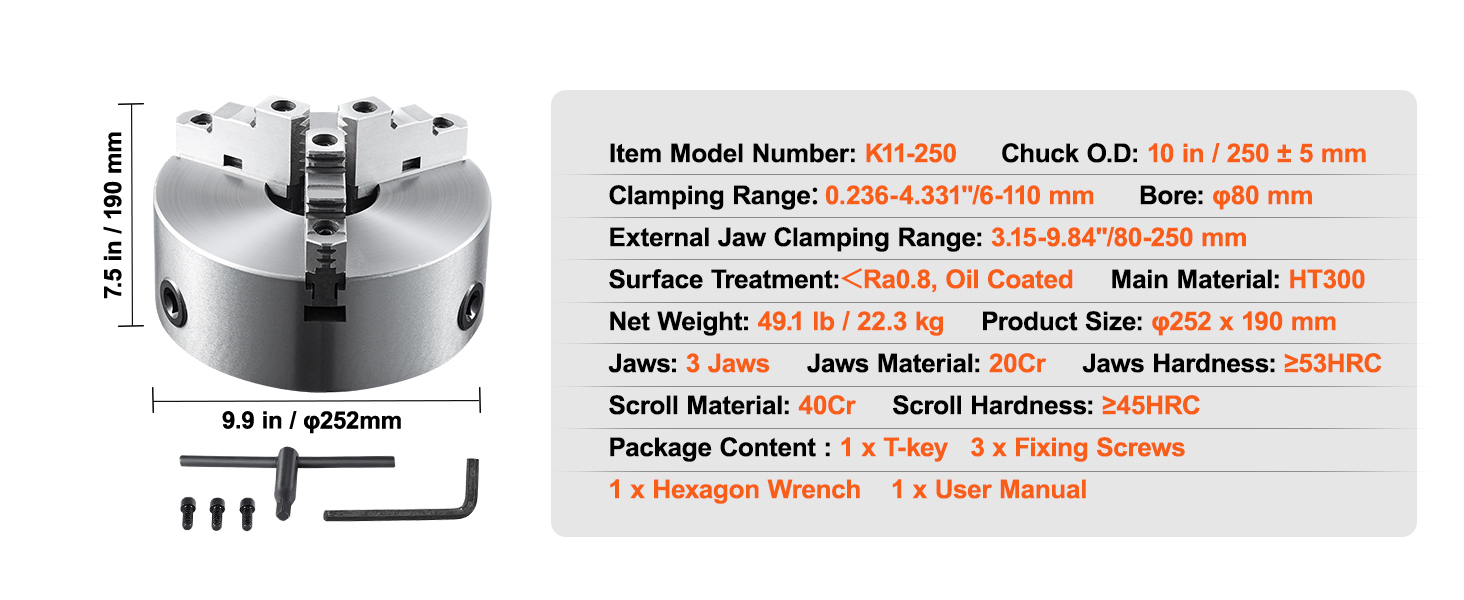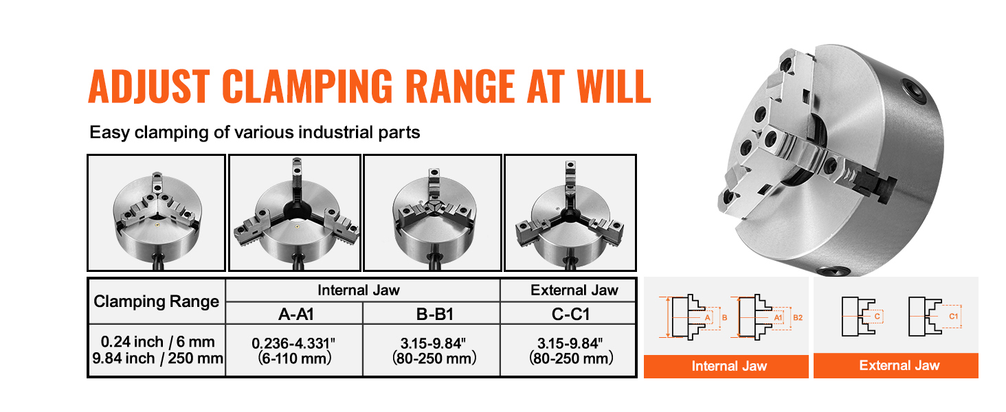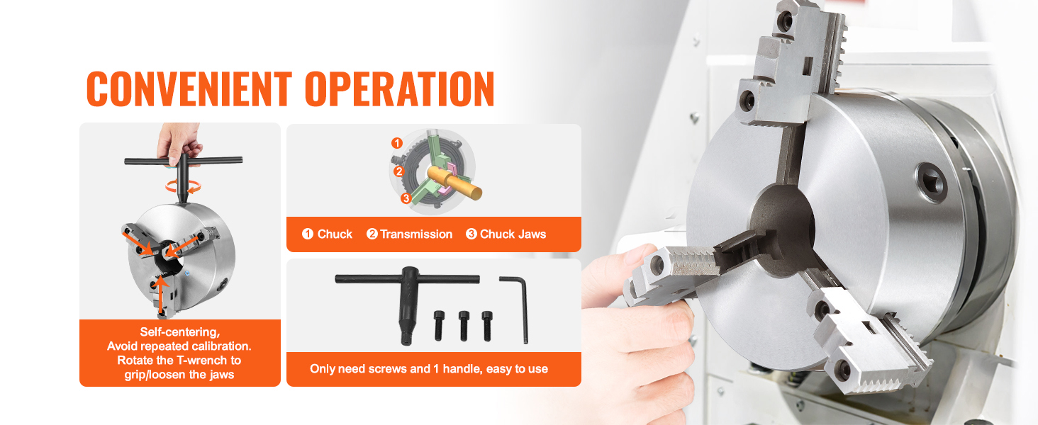 Whether you're working in woodworking, metalworking, drilling, or milling, our 3-jaw self-centering lathe chuck can meet your requirements for improved machining efficiencies and increased job flexibility and precision.