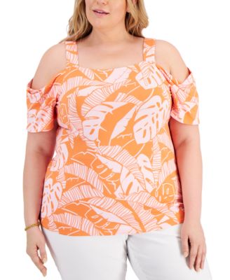 Make a style statement in this beautifully printed plus size top from Jm Collection designed with cold-shoulder cutouts. (Clearance)