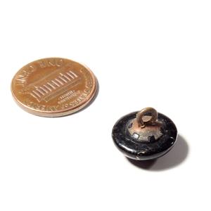 (1) 14mm Collectible Rare Antique Victorian Austrian Hungarian empire fancy blue satin floral aventurine gold black glass button with rosette shank. Highly elaborate handmade lampworked glass button. One of the rarest buttons you will ever find and of museum quality.