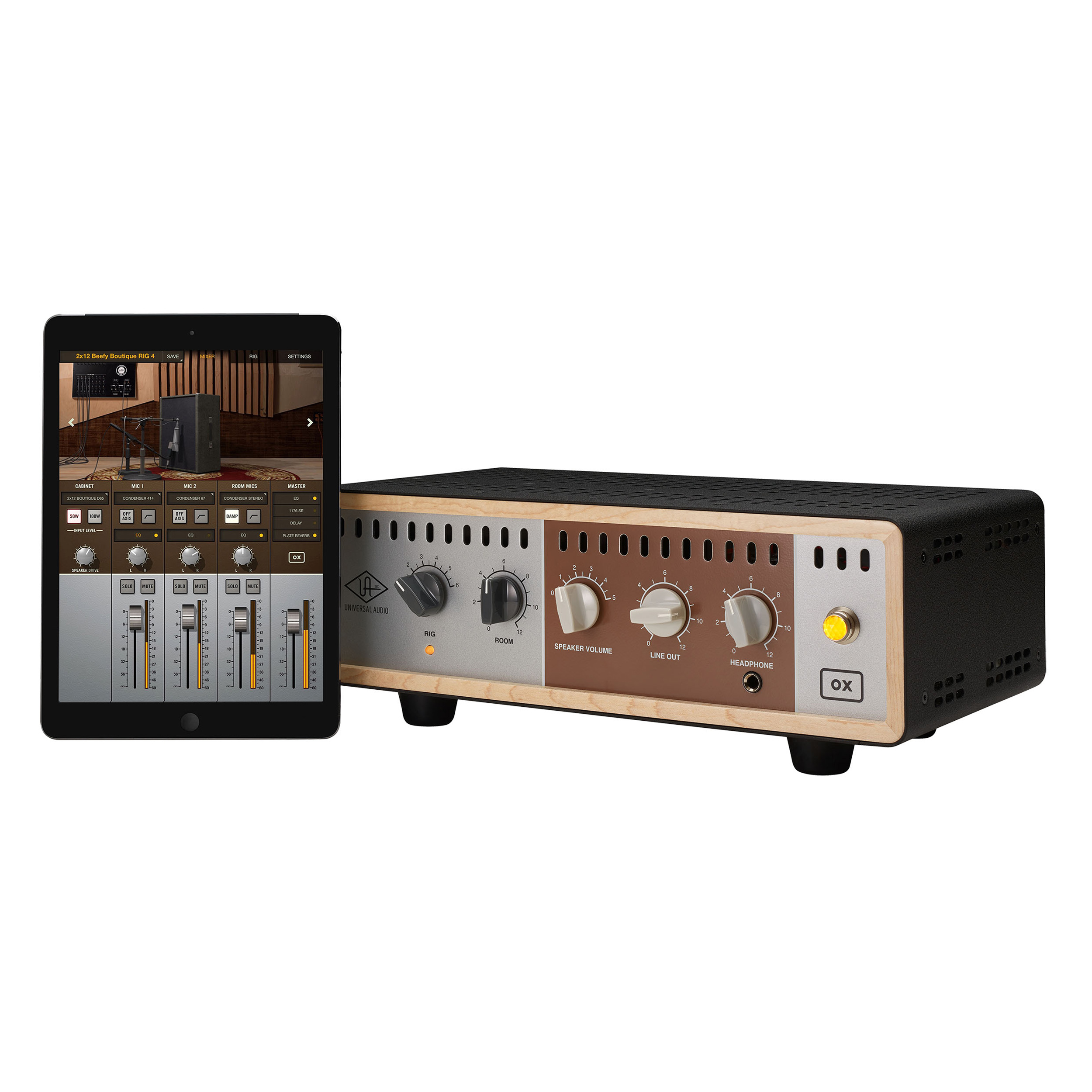 With decades of analog hardware engineering expertise, Universal Audio's dream team of engineers set out to design a reactive load box that retains the tone, dynamics, and feel of your tube amp - no matter how much it's attenuated. The goal was for your tube amp to "see" OX as an actual speaker - with continuously variable impedance and response - so you don't lose a drop of tone or playing dynamics. Mission accomplished. Just plug your tube amp's speaker output into OX, and then plug OX's output into your cabinet, and you'll enjoy your amp's natural tone like never before. OX's front-panel, six-position RIG control allows you to quickly choose from complete setups - including 22 vintage and modern cabinets loaded with iconic speakers from Celestion, Jensen, JBL, and more* - close mics, ambient room mics, and up to four simultaneous studio effects. OX is also the only guitar recording system to offer a complete selection of expertly placed room mics, giving you the authentic experience of pushing air while recording your cranked amp in a world-class tracking room. UA's groundbreaking Dynamic Speaker Modeling faithfully emulates speaker breakup, drive, and cone cry - an essential ingredient to organic tube amp tones. Using the Speaker Breakup knob in the OX app, you can control the harmonics and sonic complexity that occurs only at certain frequencies and volume levels on various speakers - far beyond a static Impulse Response system - giving you the same sonic phenomenon that occurs with a real speaker cabinet. Most guitar products do digital awkwardly. They're ugly and hard to understand. The OX software app, on the other hand, offers slick, intuitive control over all of OX's RIG settings via WiFi - letting you tweak, store and recall hundreds of presets from your iPad, Mac, or Windows 10 computer. You can then save your six favorite sounds onto OX's front-panel RIG knob for instant recall in the studio or at a gig.