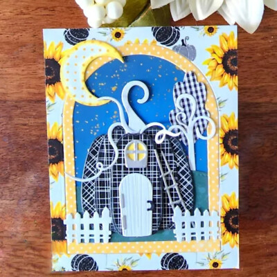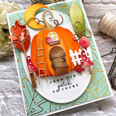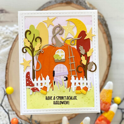 These amazingly detailed dies have a lot of versatility. Halloween, autumn, Thanksgiving, and fairy tale themed projects are just a few examples. Omit the pumpkins for even more creative options for scenes. Skip the stars and moon for daytime. Use the bare trees for winter projects.