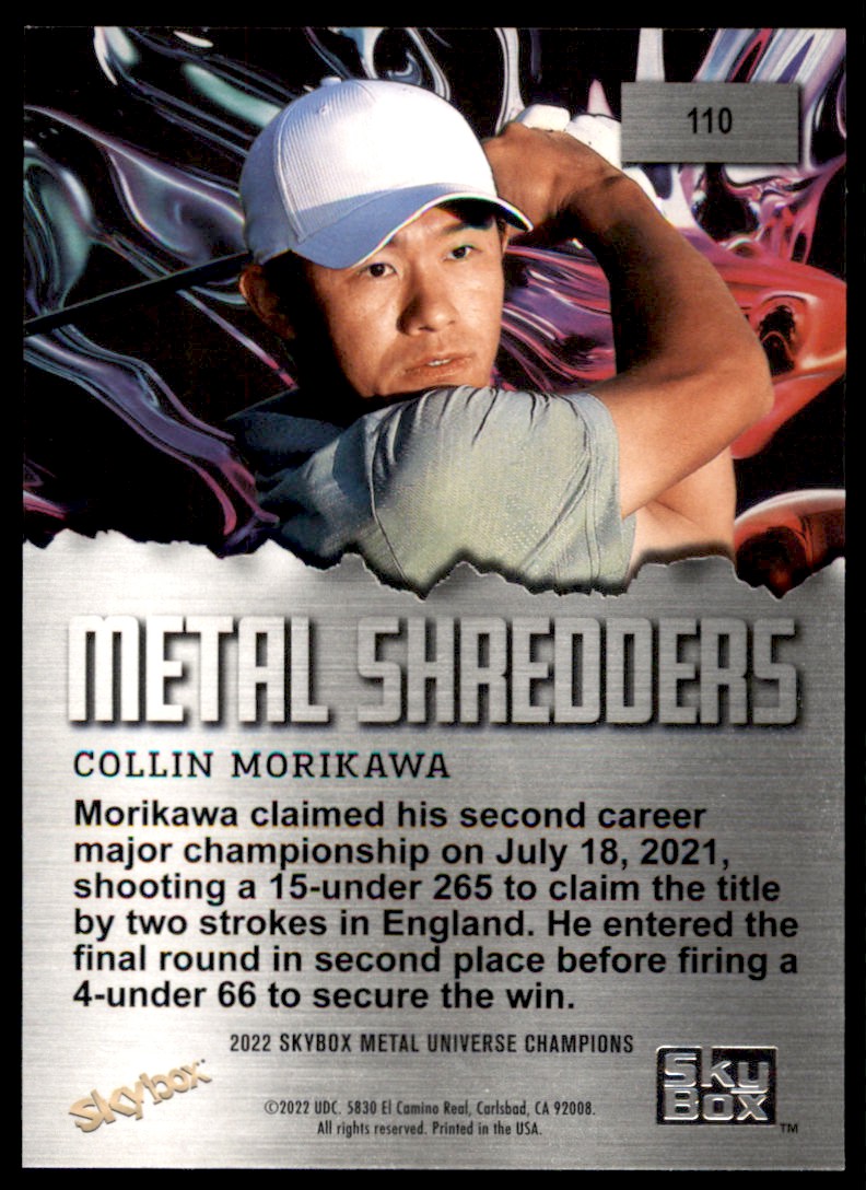 | 2022 SkyBox Metal Universe Champions Metal Shredders 110 Collin Morikawa |