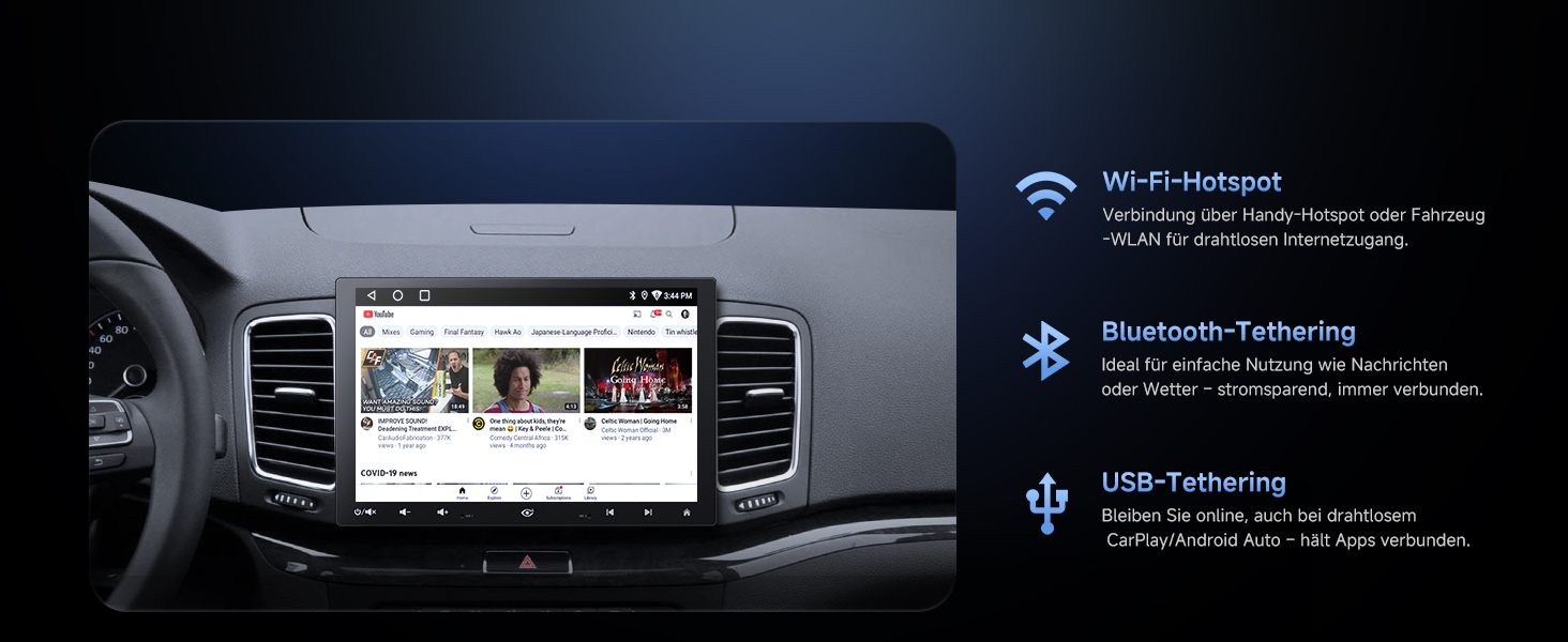 [Android OS Expandability]:Installieren Sie Apps aus dem G00gle Play Store. Nutzen Sie Navigation und Unterhaltung über WLAN-Hotspot, Bluetooth- und USB-Tethering