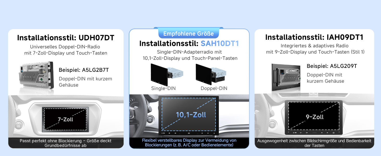 ATOTOEXCEL A5L 10,1 Zoll Android Autoradio 1DIN & 2DIN, Wireless CarPlay & Android Auto Radio mit Floating Display, WiFi/BT/USB Tethering, Rückfahrkamera, HD LRV, DSP/FM, 2G+32G