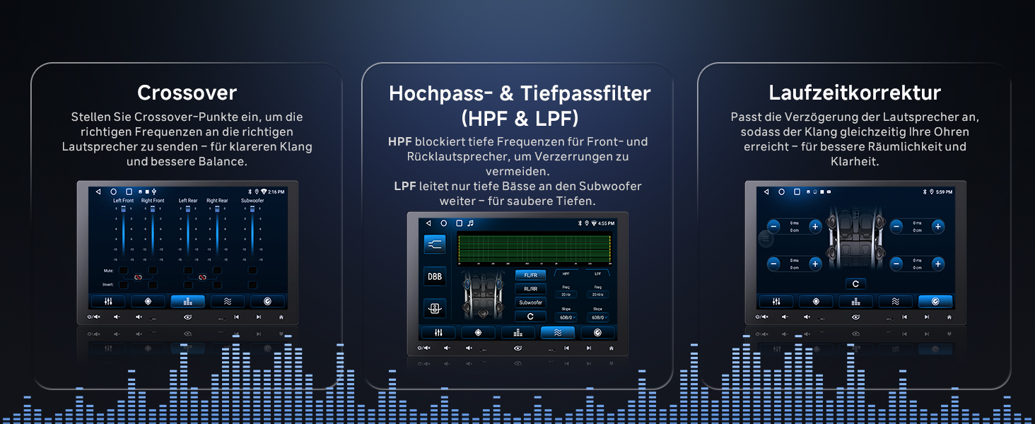 [Verbesserter DSP]: A5 Lite 10,1 zoll autoradio 1DIN mit eingebautem Verstärker (Peak 4x45W, RMS 4x24W) und 24-Band EQ mit 9 Voreinstellungen. Mit dem DSP passen Sie den Klang nach Ihren Vorlieben an für ein individuelles Hörerlebnis