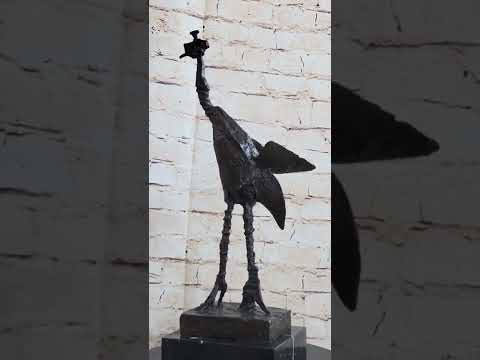 Poised on a sleek black marble base, this artwork achieves a harmonious blend of materials and form. The sculpture proudly bears the signature of Picasso, underscoring its quality and significance as a tribute to the artist's distinctive perspective and the abstract interpretation of the ostrich. A truly captivating piece that invites contemplation and admiration.
