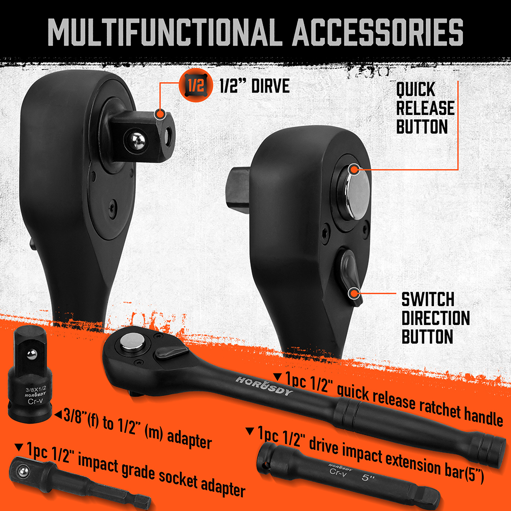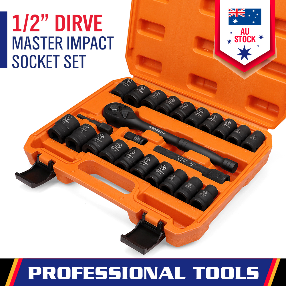 24-Piece 1/2" Drive Impact Socket Set SAE Metric 6 Point Extension Bar Ratchet