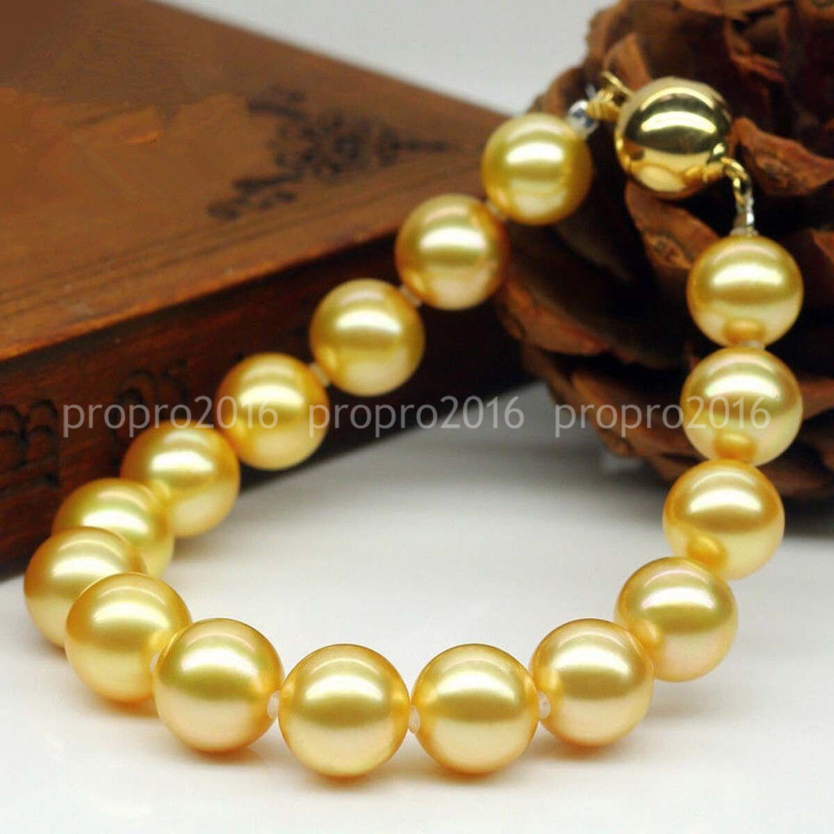 Gold Yellow Shell Pearl 8/10/12/14/16/18/20mm Round Beads Bracelet 7.5''