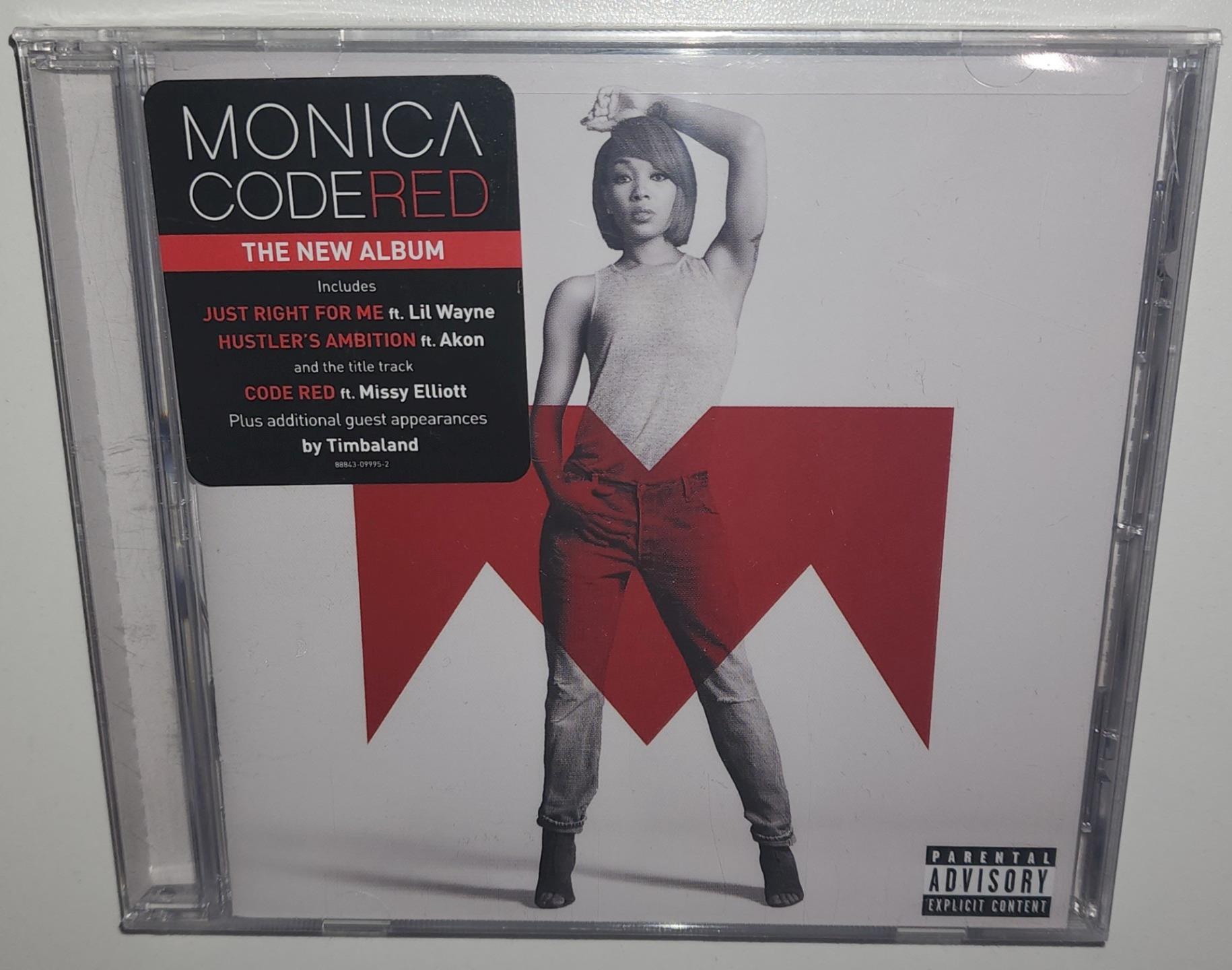 MONICA CODE RED 2015 release, the eighth album from the R&B star. Code Red is the long awaiting follow-up to her 2012 album New Life. "Just Right for Me", featuring guest vocals from rapper Lil Wayne was released as the lead single. The song debuted at #26 on the US Billboard Adult R&B Songs chart. The album also includes the title track featuring Missy Elliott and Laiyah, “Love Just Ain’t Enough” (featuring Timbaland) and “Hustler’s Ambition” (featuring Akon).