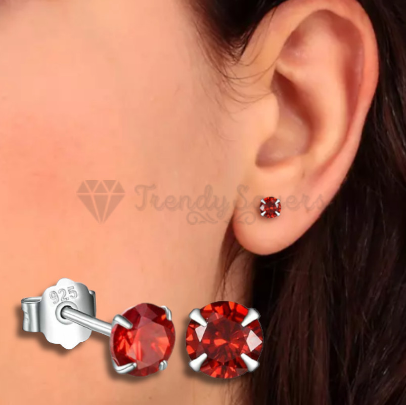 * Attract everyone's attention towards your gorgeous style of wearing elegant clothes and accessories when you complete your outfit with these stunning round stud earrings. * Made of Solid 925 Sterling Silver, these round-shaped red stud earrings are hypoallergenic, durable, lightweight, easy to maintain and use, and guaranteed anti-corrosive. * Suitable for women, these stud earrings which come in pairs, make a lasting impression, and are charming and classic to look at, whether you are in a business meeting, romantic dinner, or out with friends. * A very suitable present for your loved ones during holidays and special occasions like Parties, Birthdays, Graduation Day, Valentine's Day, Weddings, Anniversaries, and Mother's Day.