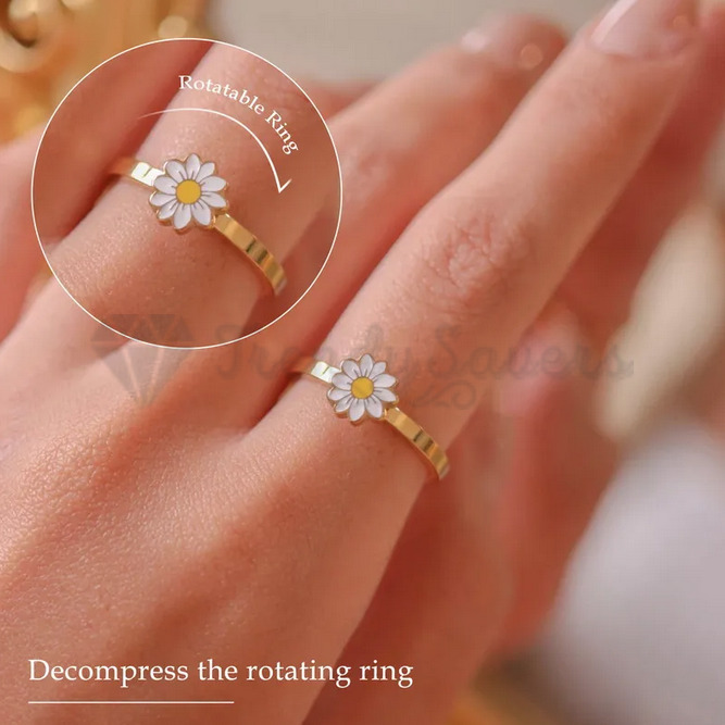 Chic Gold Spinning Daisy Flower Anti-anxiety Adjustable Ring 18K Gold Plated 1pc